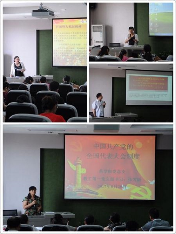(药学院)2017年6月21日下午,药学院党总支在E-303学术报告厅组织了支部书记讲授专题党课比赛活动,药学院全体党员参加了本次活动,本次活动由药学院党总支副书记吕忠田主持。 首先,药学院学生第一支部书记杨欣雨详细介绍了学生党员发展的流程、规定、培养对象的上报、转正、党龄计算等问题;接着学生第二支部书记杨娜讲授了关于《长征》的概念和长征精神,她讲到,长征是为了救国救民,解救国家危难,不怕任何困难险阻,体现不...