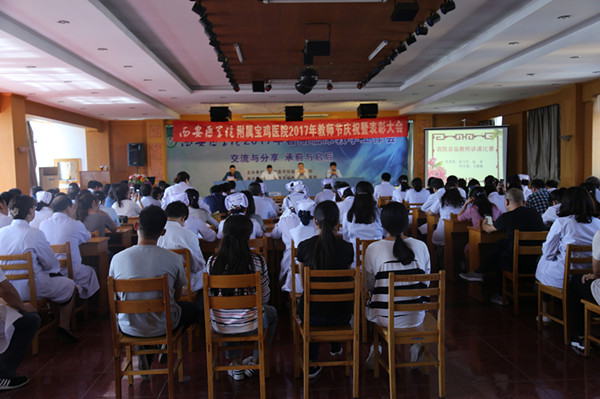 9月7日下午,附属宝鸡医院隆重举行了2017年庆祝教师节活动暨表彰大会。作为宝鸡地区唯一一家高等医学院校直属附属医院,坚持举办教师节庆祝表彰大会,表彰教学先进是该院的一项文化传统。医院领导班子成员与我校临床本科1492班学生、实习生代表、临床本科班全体教师、实习带教组长、科主任、护士长和教学管理人员等100余人出席了大会,大会由王光明副院长主持。 会上,附属宝鸡医院焦晓虎副院长宣读了《关于表彰2016 -2017学年...