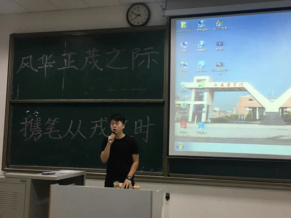 为积极响应国家政策,学校号召,提高同学们对大学生入伍的了解,培养学生的爱国精神,增强大学生国防意识,2017年9月27日晚上19:00英语系举办了以“风华正茂之际,携笔从戎之时”为主题的爱国主义教育活动。 本次活动内容丰富,主题鲜明。首先以一则简短的征兵入伍宣传新闻拉开序幕,使同学们对征兵信息有了初步了解。 观看新闻及征兵宣传片 随后,大家观看了征兵主题纪录片,从纪录片中感受到了军人的热血激情,部队生活的整...