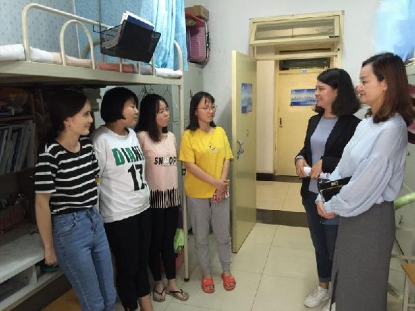 双节将至,9月29日中午,医学技术系党总支副书记耿潇潇带领学生科长吕宝、团总支书记魏慧以及专职辅导员李周、万婧媛、杨希等一行六人走访了我系部分少数民族学生宿舍,看望了我系少数民族学生并送去了节日的祝福和温馨的叮咛。 系副书记耿潇潇、学生科科长吕宝看望少数民族学生 维吾尔族学生在我系少数民族学生中占比较大,由于家庭遥远,多数学生选择在校过节。面对此情况,耿书记特意一一对她们的假期安排进行了仔细询问,...