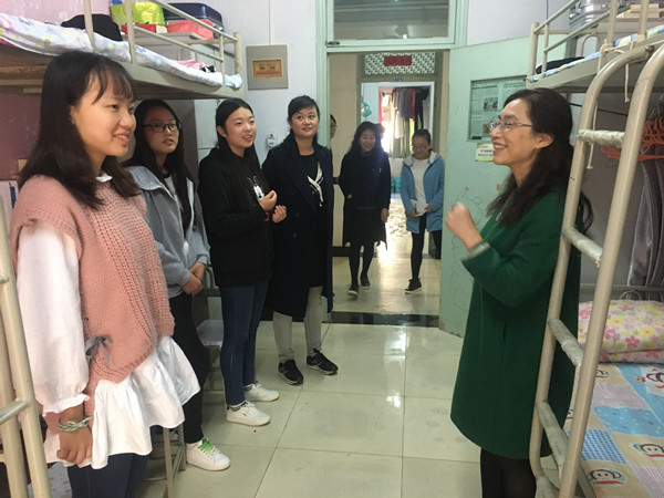 为进一步加强学生宿舍日常安全管理工作,丰富宿舍文化生活,为学生提供和营造一个安全、舒适、便利和有益身心健康发展的学习和生活环境,督促我系学生保持良好的宿舍卫生环境,2017年10月27日中午,英语系主任陈蓁、系党总支副书记陈旭华、副主任薛英利和系党政办、学生科的几位老师及系学生会权益部的同学们对我系学生宿舍安全卫生、寝室风貌等方面进行检查,并走访了辅导员工作室、学生党团活动室等。 系领导与学生亲切交谈 ...