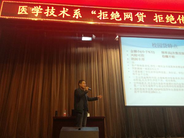 2017年11月3日16时,医学技术系在校学术报告厅面向2017级新生进行了题为“拒绝网贷拒绝传销拒绝欺凌”的专题教育。教育由辅导员刘向锋老师主讲。系学生科长吕宝和全体专职辅导员参加了会议。 刘向峰老师主讲 报告开始后,刘老师通过层层抛出问题、层层解答问题的策略和同学们展开互动学习,激起同学们对校园贷、传销和校园欺凌等问题危害的重视;通过恰当的事例,以事析理,引导学生认清形形色色的校园贷、传销等问题的本来面...