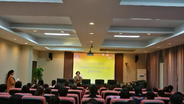 10月27日下午,护理学院2017-2018学年“乐学睿思学长团”表彰大会暨聘任典礼在学院报告厅顺利举行。护理学院学生管理科科长昝倩、全体辅导员以及“乐学睿思学长团”成员、在校班级学习委员、17级纪律委员参加了此次大会。 学生科科长昝倩讲话 首先,学生管理科科长昝倩对“乐学睿思学长团”一年来工作进行了总结,肯定了学长团成员的辛勤付出,表达了对团里各位小老师们主动热心帮扶学业有困难学生的感谢,对学长团未来发展提...