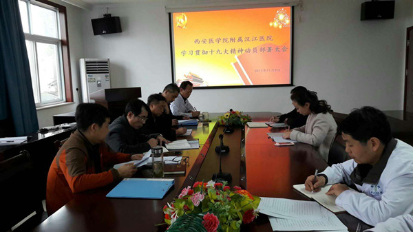 11月9日下午,附属汉江医院在行政楼二楼会议室召开党委理论学习中心组扩大会议,动员部署学习宣传党的十九大精神,全体党委委员,各党支部支部书记,党办主任参加了会议。会议由党委书记刘睿主持。 会议现场 会上,刘书记就全院学习宣传贯彻党的十九大精神作了安排部署。他指出,在党的十九大胜利闭幕之际,我们要组织全职工深入学习党的十九大精神,深刻领会习近平总书记报告精神,以学习贯彻十九大精神为强大动力,牢记习近...