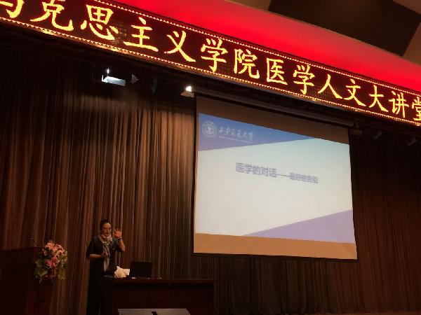 2017年12月11日下午,在我校学术报告厅举行了由科技处、马克思主义学院、医学人文研究中心共同承办的医学人文大讲堂活动月第四次讲座。此次讲座邀请了西安交通大学魏琳副教授作了题目为《医学的对话---最好的告别》的学术报告。报告由马克思主义学院院长桑利娥主持。 魏琳老师在医学人文大讲堂作报告 首先,魏老师以林语堂先生《美国的智慧》入手,从文学、哲学、宗教等角度探讨了人类逃离不开的话题----死亡。 其次,魏老师从...