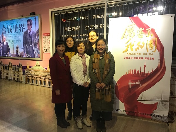 恰逢全国两会召开之际,药学院党总支为了持续深入贯彻党的十九大精神,积极推进教师的爱国主义教育,给药学院每位职工赠送《厉害了,我的国》电影票。2018年3月10日上午,天然药物化学教研室的老师们利用周末相约于西安卢米埃电影院,一起观看了纪录影片。 天然药物化学教研室组织教师观影 《厉害了,我的国》从圆梦工程到创新科技、从绿色中国到共享小康,展示了人类历史上最大的射电望远镜FAST、全球最大的海上钻井平台“蓝...