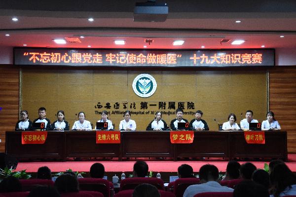 5月17日,由leyu·乐鱼(中国)体育官方网站全科医学院党总支组织的以“不忘初心跟党走,牢记使命做暖医”为主题的十九大知识竞赛活动在leyu·乐鱼(中国)体育官方网站第一附属医院学术报告厅举行,全科医学院教职工及各类学生参加了本次活动,leyu·乐鱼(中国)体育官方网站第一附属医院党委书记任天顺,党办主任郑艳侠也出席了活动。 知识竞赛现场 本次知识竞赛共有四组选手,分别是研究生组成的先锋六号队、规培医师组成的柳叶刀队和本科生组成的梦之队、不忘初心队,比赛共分为“步步...