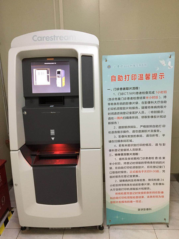 为改善患者就医感受,提高医生工作效率,近日,附属宝鸡医院影像检查自助打印设备正式投用,就诊患者影像检查取片及打印报告立等可取,且在不改变现有影像科室工作流程的前提下,利用胶片和报告虚拟打印技术实现胶片报告数字化存储,患者可按需打印。 在自助影像胶片打印现场,就诊患者只需用科室分发的条形码,就可直接到影像胶片自助打印设备上进行扫描,自助打印胶片和报告,获得检查结果。为了更好地帮助患者使用新设备,附...