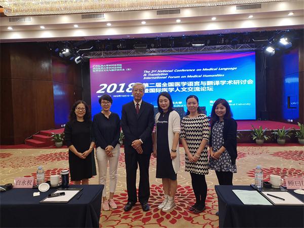 2018年10月14日至15日,我校第三批校级重点学科(医学英语)、校级重点扶植学科(医学人文英语)学科骨干一行5人参加第二届全国医学语言与翻译学术研讨会暨国际医学人文交流论坛。此次学术会议由广西医科大学承办,大会主旨发言专家均来自国内知名院所,分别是西安安交通大学白永权教授(教育部医护英语水平考试专家组组长、中华医学会全国医学外语学组主任委员)、清华大学崔刚教授(清华大学语言与心理研究中心主任、博士生导...