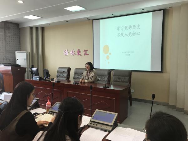 10月24日下午,学工部部长靳红樱在外国语学院报告厅为全体教工党员上了《学习党的历史不改入党初心》为主题的党课。 学工部部长靳红樱讲党课 靳红樱部长首先分析了中国共产党性质,并引用习近平在庆祝建党95周年上的讲话来描述中国在共产党的领导下创造的“三个伟大飞跃”,又从鲁迅先生作品《中国人失掉自信力了吗?》的选段、中国近代国情、近代中国人民的求索、共产党人数发展趋势等方面来阐明选择中国共产党是历史的必然。...