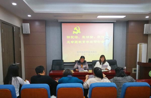 按照校党委“讲政治、敢担当、改作风”专题教育要求,1月23日上午,医学技术学院党总支在学院三楼报告厅召开了专题教育学习研讨会,医学技术学院党总支副书记耿潇潇主持并讲话,全体党总支委员列席会议。 会议现场 会议首先由耿潇潇带领学习了《关于印发党委书记范兵同志在“讲政治、敢担当、改作风”专题教育再部署会议上的讲话的通知》,并传达了学校1月21日召开“讲政治、敢担当、改作风”专题教育再部署会议的会议精神,随...