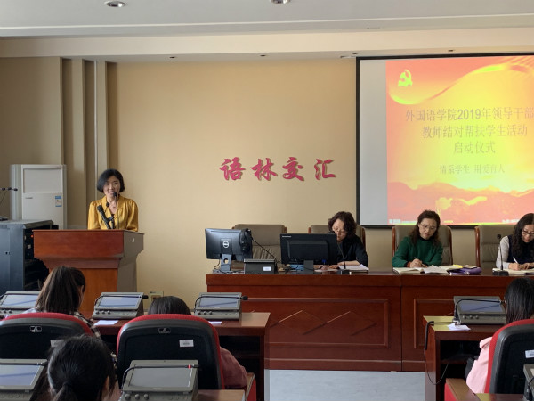 2019年4月3日,外国语学院党总支在立行楼五楼学术报告厅召开“2019年领导干部和教师结对帮扶学生”专项活动启动大会。学院党总支副书记尚瑜、院长陈蓁、副院长薛英利、全体教职工及学生代表共100余人参加了会议。大会由学院党总支副书记尚瑜主持。 首先尚瑜副书记解读《外国语学院2019年领导干部和教师结对帮扶学生活动方案》,从活动开展的意义、帮扶内容、帮扶方式及工作要求等几个方面就学院帮扶工作做了周密部署和安排。并...