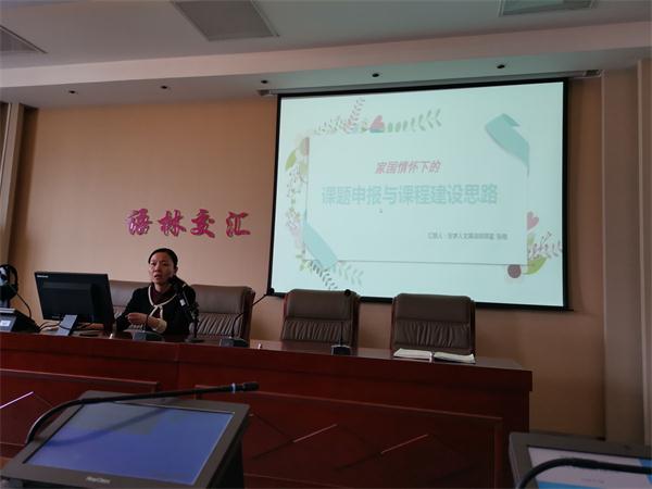 2019年4月3日外国语学院副教授张艳老师作了题为“家国情怀下的课题申报与课程建设思路”的学术报告,分享了在科研申报、课程建设和人才培养等方面的反思,报告会由外国语学院副院长薛英利主持。 首先,张艳老师在报告中提到科研课题的申报要具有家国情怀,将国家战略和学校特色结合起来,同时要注意结合自身的学术水平并科学选题。还分享了高等教育部高教司吴岩司长提出的“新使命大格局 新文科 大外语”的指导思想。2019年是全...