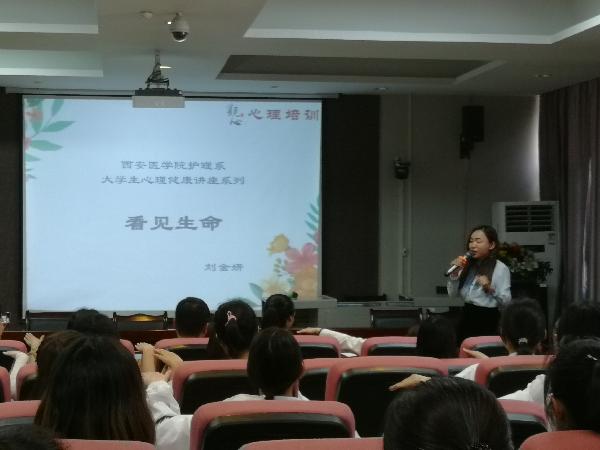 为了引导学生关注生命个体,学会悦纳自我,提升大学生心理健康教育工作的针对性和实效性,4月25日中午,护理学院特邀请陕西观心心理培训中心讲师、国家二级心理咨询师刘金妍老师在学院报告厅作了题为“看见生命,关注自我”的讲座。护理学院学生科张红梅、全体辅导员、各班心理委员以及部分学生代表参加了本次讲座。 讲座现场 讲座伊始,刘金妍老师通过分享自己与护士接触的就医经历,引发学生对看见生命的共鸣,由此阐述了看...