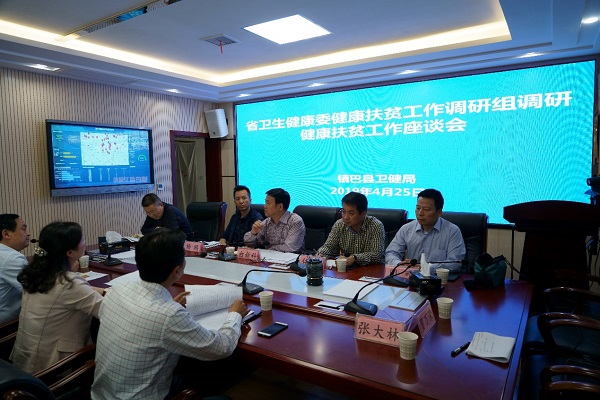 为深入了解基层互联网+健康扶贫建设及应用情况,公共卫生学院门可副院长作为陕西省健康扶贫咨询专家委员会成员于4月25-26日与陕西省卫生健康委员会老龄健康处和健康促进处,陕西省卫生计生健康教育宣传中心,陕西省第二人民医院等有关领导成立的调研组,对汉中市特困县(略阳县和镇巴县)开展互联网+健康扶贫建设及应用调研工作。 调研组座谈讨论中 调研组采取座谈讨论,现场考察等方式,对县中医医院、镇卫生院、村卫生室的居...