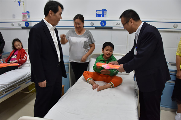 送去五月的芬芳,迎来六月的时光。6·1国际儿童节是所有小朋友们最盼望和最快乐的日子。为了让医院的患儿们能够与其他孩子一样享受到节日的快乐,感受节日的温馨,附属汉江医院儿科的医护们早早的准备起了一份份惊喜。 清晨,儿科病房里挂着五颜六色的“童真”,治疗车里满载着给孩子送上的“甜蜜”。在医院党委书记欧阳平、院长周胜的带领下,党委班子成员挨个病房为患儿及家长们送上文具、跳绳、魔方、气球等充满童趣的小礼物...