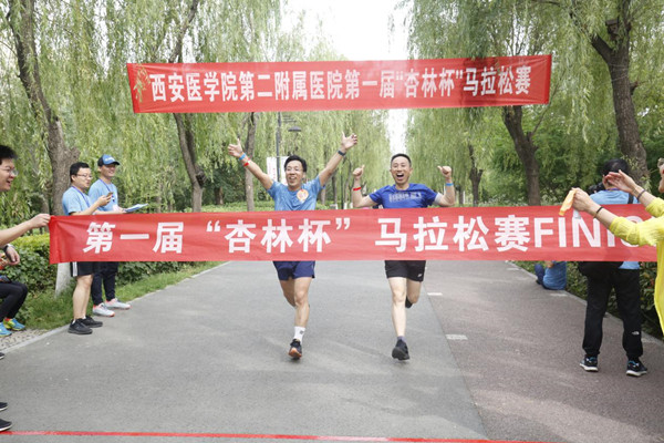 为了庆祝中华人民共和国成立70周年,6月1日,第二附属医院在西安灞河湿地公园举行首届“杏林杯”职工马拉松赛,300余名医务工作者全力奔跑,展现新时代医务人员努力进取、奋发向上的精神风貌,让“健康中国,医者先行”从口号变为实践。 选手风采 比赛开始前,参赛选手现场集体合唱《我和我的祖国》,把对祖国的深情祝福化作律动的音符,用最真挚的热情、最灿烂的笑容,展现医务工作者的精神风貌,共同祝愿祖国越来越强大。 ...