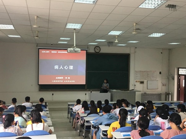 6月4日7-8节课,由公共卫生学院心理学教研室李婧副教授主讲的《医学心理学》“课程思政”观摩课在教学楼207教室举行,现场气氛热烈。 李婧副教授授课现场 李婧副教授本次授课内容为《病人心理》,课前特邀请口腔医院医务工作者们为同学拍摄正畸病人视频,把案例导入引发学生关注病人心理,了解临床各类病人的一般心理特征,为100余名2018级口腔专业大一学生上了一堂生动的课程思政课。并由学生“换位角色体验”拍摄心理剧,以...