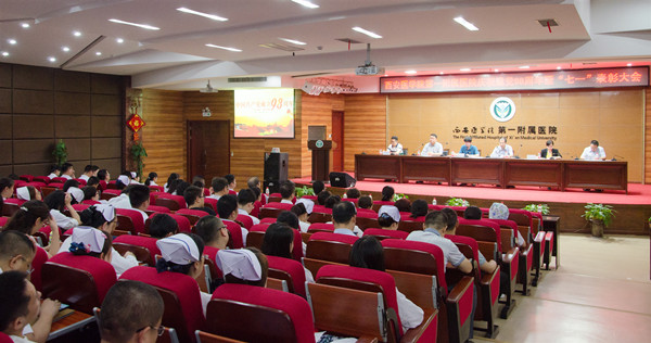 为了纪念中国共产党成立98周年,进一步学习贯彻习近平新时代中国特色社会主义思想和党的十九大精神,不断推进“一流人文品牌医院”建设。6月27日下午,第一附属医院在学术报告厅举行庆祝中国共产党成立98周年暨“七一”表彰大会,院领导、科主任、护士长、全体党员及入党积极分子参加了会议。会议由第一附属医院党委副书记、院长李亚军主持。 庆祝中国共产党成立98周年暨“七一”表彰大会 大会伊始,全体人员起立,奏唱《中华...