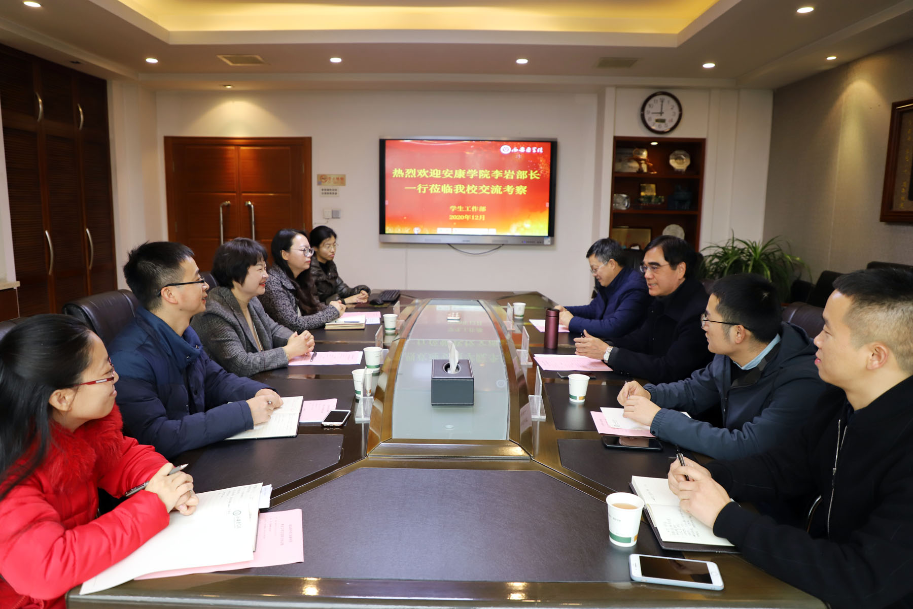 12月4日上午,安康学院学工部部长李岩一行四人来我校交流考察学生工作。学工部部长、学生处处长靳红樱,校易班发展中心主任杨延庆,大学生资助中心主任李一杨参加交流,会议由学工部部长、学生处处长靳红樱主持。 座谈会现场 座谈会上,靳红樱代表学校对李岩一行的到来表示欢迎,并向安康学院的同仁详细介绍了我校的发展历史和教学科研、招生就业、学生管理、辅导员队伍建设、校内体制改革等情况,随后对我校整体的学生工作开...
