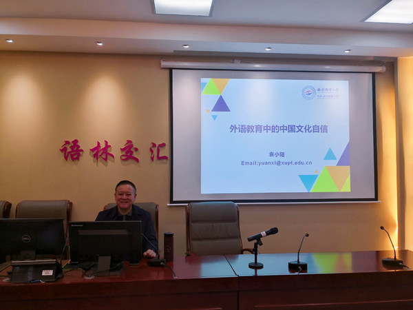 2020年12月3日下午外国语学院邀请西安邮电大学人文与外国语学院袁小陆教授来我校作题名为“外语教育中的中国文化自信”学术讲座。学术报告由外国语学院副院长薛英利主持。外国语学院全体专任教师和英语专业大三年级学生参加了此次学术讲座。讲座围绕英语专业学习中“中国文化传承”的问题、意义、现状和对策四个方面内容展开,讲者结合自身主持国家社会科学基金项目的研究成果,探讨了英语教育中的中国文化失语现象、英语专业教...