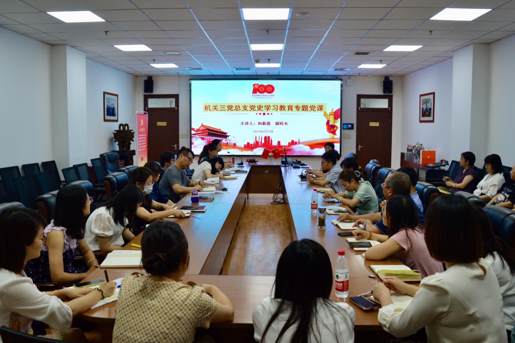 为深入贯彻落实学校党史学习教育的总体安排和部署,促使党史学习教育学到深处悟到实处。6月23日中午,机关三党总支邀请校党委委员、副校长和新盈在图书馆一层会议室为总支全体党员讲授了题为《中国共产党为什么能》的专题党课。本次专题党课由党总支书记王燕主持,机关三党总支全体党员参加。和新盈副校长讲党课专题党课上,和新盈副校长指出开展党史学习教育是党的政治生活中的一件大事,一项重大决策,是三个必然的根本要求,...