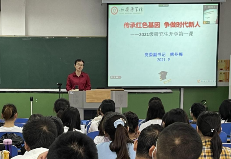 9月6日,校党委副书记熊冬梅在含光校区研究生楼以“传承红色基因 争做时代新人”为题,围绕习近平在庆祝中国共产党成立100周年大会上的讲话精神,为我校2021级新入校研究生讲授开学第一课。讲座由研究生工作部部长郭婷主持。党委副书记熊冬梅讲课首先,熊冬梅代表学校对同学们的到来表示热烈欢迎和祝贺。围绕习近平总书记重要讲话,她以党对青年寄语开篇,从不负时代、不负韶华、不负党和人民的殷切期盼三个方面展开了一堂有高度...