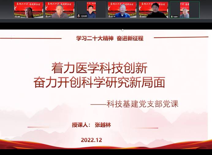 12月16日下午,副校长张越林以“着力医学科技创新 奋力开创科学研究新局面”为题,通过视频会议的形式为科技基建支部讲授专题党课。党课由科技基建支部书记唐成芳主持,科技基建支部全体党员参加学习。张越林讲授党课党的二十大报告中指出:必须坚持科技是第一生产力、人才是第一资源、创新是第一动力,深入实施科教兴国战略、人才强国战略、创新驱动发展战略,开辟发展新领域新赛道,不断塑造发展新动能新优势。围绕“科技创新...