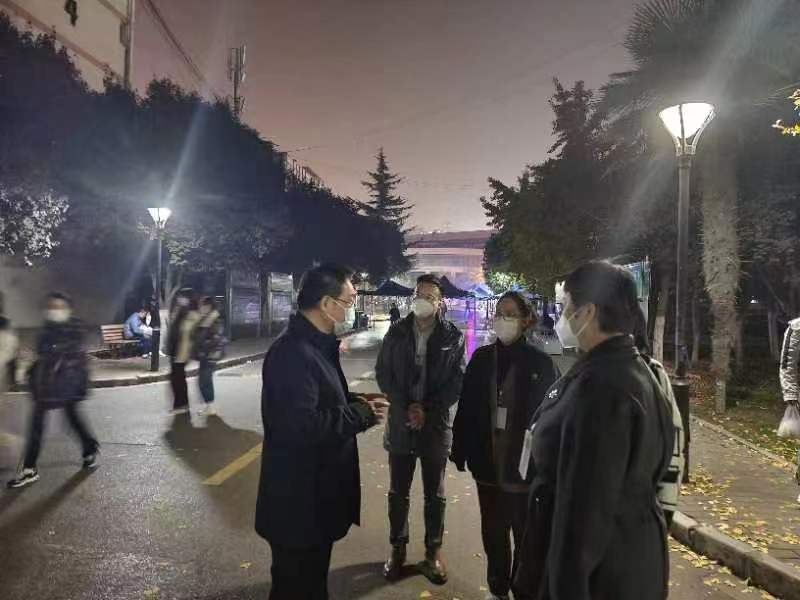 (党宣快讯)19日晚10:00,党委书记刘岭、副书记姚文柱带队慰问值班值守干部和辅导员,督导巡查校园疫情防控工作,先后到图书馆、教学楼、生活区食堂、学生公寓楼等重点区域检查门禁管理和防疫措施落实情况。强调要进一步夯实责任,以高度负责的态度落实落细各项防控举措,织密织牢疫情防控网,确保师生生命安全和身体健康。20日晚,刘岭、姚文柱深入教学楼、学生公寓看望学生并与球迷同学共享卡塔尔世界杯足球赛开幕式和首场球...