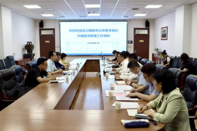 5月17日,省卫生健康委科教宣传处副处长雷俊川,西安交通大学研究生院副院长、教务处副处长、医学部人才培养处处长张明,西安交通大学第一附属医院PET-CT室副主任牛晨,省卫生健康委科教宣传处一级主任科员令钊一行到我校开展医学教育工作调研。校党委副书记、副校长巩守平,副校长和新盈与调研组进行座谈,巩守平主持座谈会。巩守平、和新盈与调研组进行工作交流座谈会现场雷俊川介绍调研目的雷俊川介绍此行目的,他指出,西安...