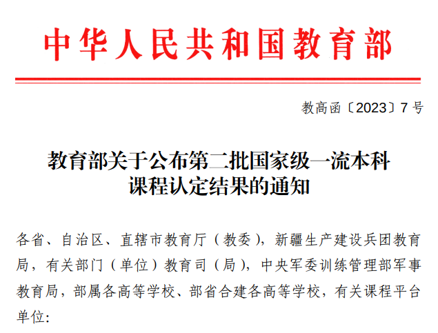 近日,教育部公布了第二批国家级一流本科课程认定结果,我校有5门课程入选国家级一流本科课程名单,其中线上一流课程1门、线上线下混合式一流课程1门、线下一流课程2门、社会实践一流课程1门,获批数量位居全省同类院校前列。截至目前,我校共获批国家级一流本科课程7门,省级一流本科课程18门,在一流课程建设中不断实现突破。获批文件近年来,学校从完善课程体系、提升课程内涵、强化课程思政引领等方面多措并举,打出一流课....