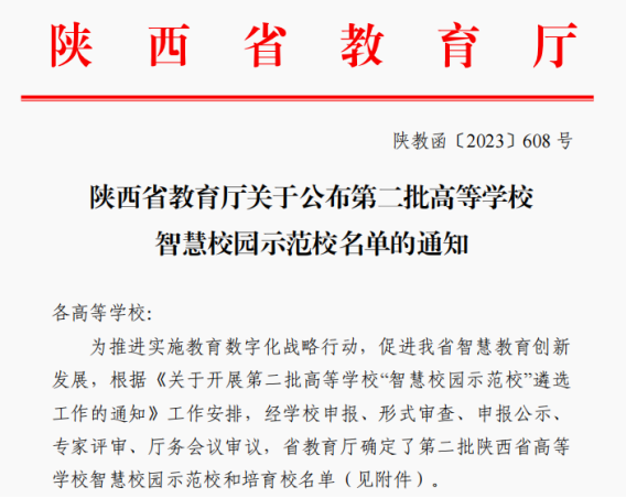 6月16日,陕西省教育厅正式公布了第二批陕西省高等学校智慧校园示范校审核认定结果,leyu·乐鱼(中国)体育官方网站顺利入选。此次评审目的是在全省打造智慧校园建设标准高、智能化应用效果好、信息化推动教育现代化场景特色鲜明的示范性高校,引领全省高校迈入智慧教育新阶段。入选文件入选名单自2021年获批陕西省智慧校园培育校以来,我校继续贯彻党中央、国务院有关教育网信工作的战略部署,积极落实响应教育部、陕西省有关网信工作部署,把握信...