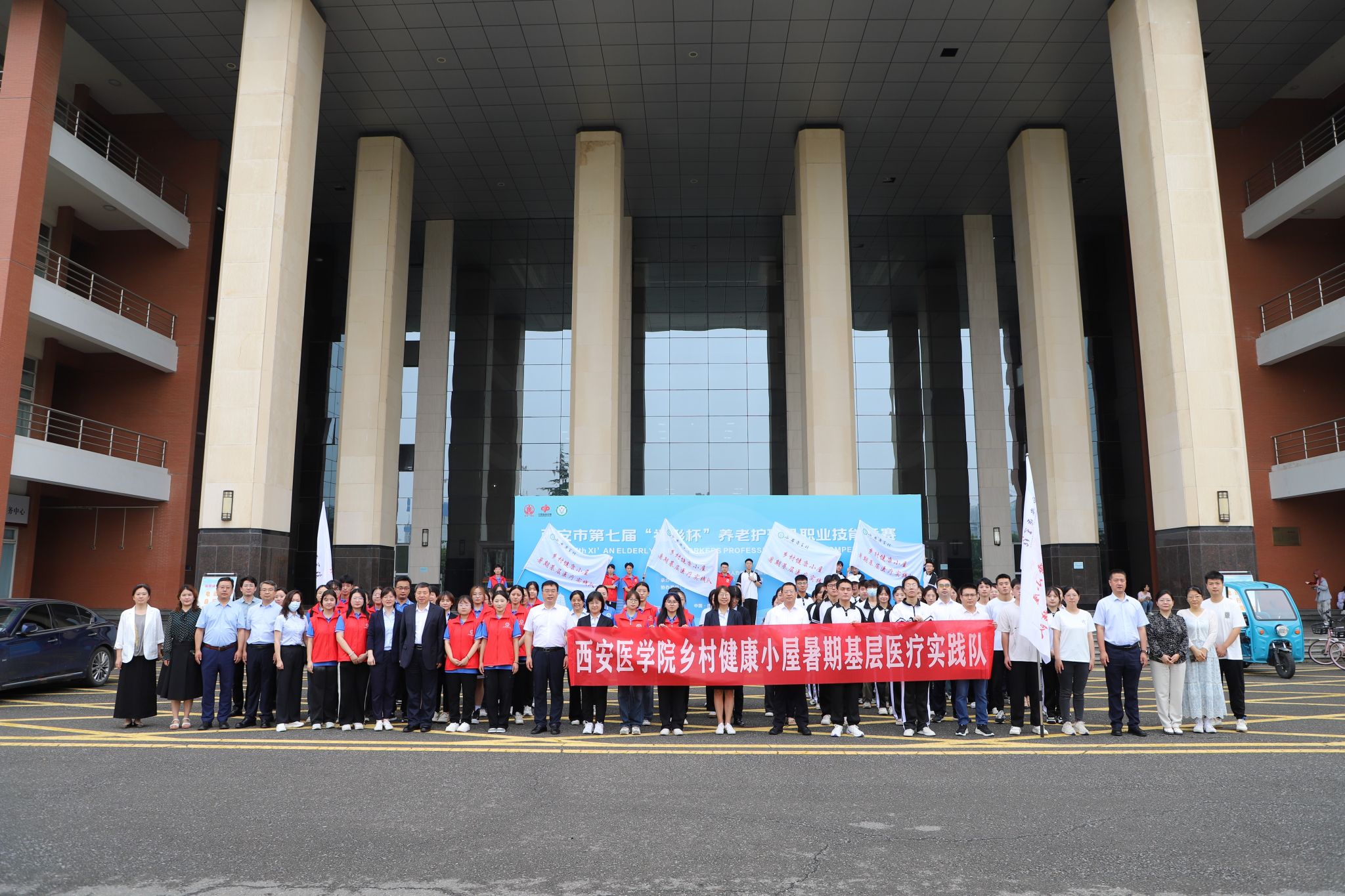 7月10日上午,我校首届“乡村健康小屋”暑期实践活动出征仪式在图书馆前举行。校党委副书记、校长巩守平,第一附属医院院长于照祥,第二附属医院院长赵海康,全科医学院党总支书记杨西萍出席仪式。仪式由医院发展管理处处长王胜昱主持。全科医学院2350班张壹格、麻醉2211班王赫雨两位同学作为实践活动学生代表发言,并表示暑期实践活动是青年学子走出校园、深入基层、感知国情、服务社会的重要桥梁,他们将用内心感应时代脉搏,....