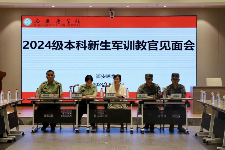 9月1日下午,2024级本科新生军训教官见面会在图书馆五楼会议室召开。校党委副书记熊冬梅出席并讲话。武装部部长、学工部部长昝倩主持。会上,学生处副处长种新锋传达了《省教育厅关于做好全省军事训练工作的提醒函》精神及相关要求,宣读了《关于成立2024级本科学生军训工作领导小组的通知》《关于成立2024级本科学生军训团的通知》及营连分配安排。武警西安支队机动二中队指导员赵正何上尉代表承训部队对学校提供的全方位服务....