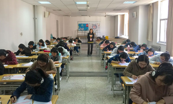(英语系)2017年全国高校英语专业四级考试(TEM-4)于4月22日上午在未央校区顺利举行,我校共有104名英语专业学生参加了此次考试。 此次考试共设考场4个,监考教师8名。为保证考试的顺利进行,英语系教学科在各科室、教研室及实验中心的支持和帮助下做了充分的考前准备工作。在试卷接收、保管、考试须知、监考步骤等各环节安排上均严格按照考试流程规范操作。在语言实验中心的协助下进行了2天不间断的试音工作,保证了每位同学听...