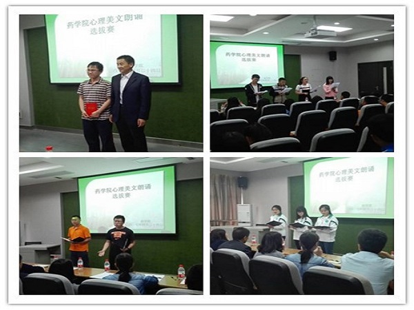 (药学院)良好的心理素质是一个人综合素质中的关键组成部分。对于高校,关注学生的心理特征、培养学生积极向上的品质、促进学生人格的健全发展乃具有重要的时代意义;朗诵则是一门用心来揣摩、用情去表达的有声艺术,其对于表达能力与人文素养提高具有重要性作用。也因此,药学院于2017年4月24日中午在本院三楼学术报告厅举办了心理美文朗诵选拔赛,旨在关注学生的心理状况并为学生提供一个展现自己、突破自己的舞台。作为评委...