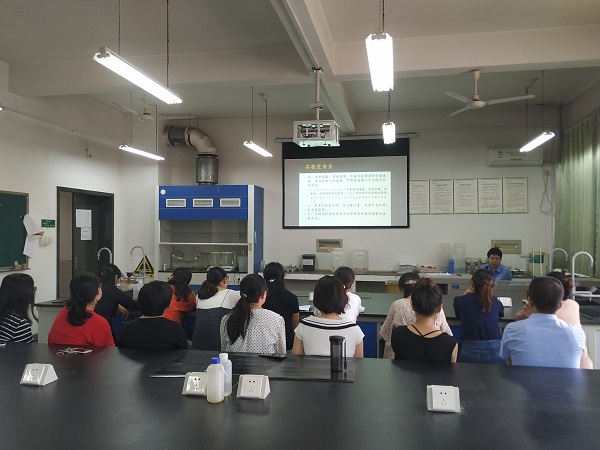 为强化师生实验安全意识,进一步做好新生实验安全教育培训工作,9月4日上午,化学实验中心主任范涛在基础化学实验室进行了题为《第一堂实验课》的安全教育培训讲座。化学实验中心所有新生实验任课老师及实验技术人员参与了此次讲座。 化学实验中心进行安全教育培训 首先,大家集中观看了中国科学技术大学化学实验教学中心录制的慕课《化学实验安全知识》。接下来,范涛主任结合我校学生特点,针对我校化学实验中心情况对大家讲...