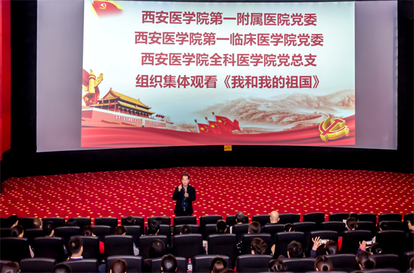 壮丽70年,奋斗新时代。为深入推进“不忘初心、牢记使命”主题教育工作,弘扬社会主义核心价值观,激发广大党员干部职工的爱党爱国情怀与热情,10月10日至11日下午我校第一附属医院分批次组织党员集体观看献礼中华人民共和国成立70周年影片《我和我的祖国》。 活动现场 《我和我的祖国》是一部以弘扬爱国为主旋律的影片,影片取材于新中国成立以来,祖国经历的无数个历史性经典瞬间,分别以《前夜》《相遇》《夺冠》《回归》《...