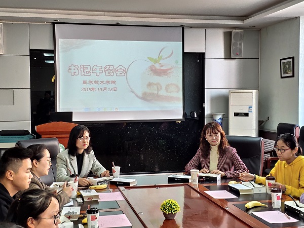 10月18日中午,医学技术学院第一期“书记午餐会”在学院三楼会议室举行。医学技术学院党总支书记耿潇潇,副书记韩文霞、学生科长魏慧与9名家庭深度困难的同学共进午餐。 会议现场 本次午餐会氛围温馨愉悦,同学们都结合自己的日常学习、生活、思想状况,敞开心扉,畅所欲言。大到专业科研平台的发展,小到日常生活中点滴事件,同学们畅谈了自己的所感所思。一名大三的同学谈到了自己的家庭情况带来的关于考研和就业之间的困扰...