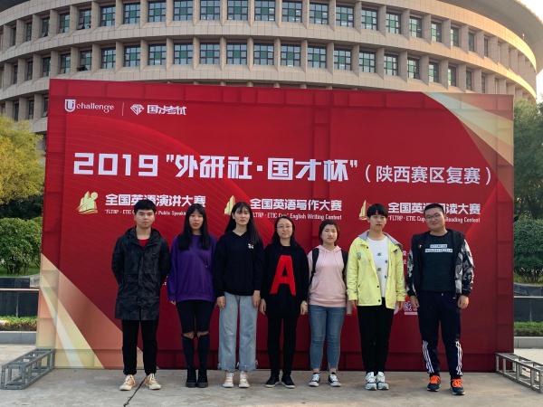 2019年10月19日“外研社杯”全国英语演讲大赛、写作大赛、阅读大赛陕西赛区复赛和决赛在陕西科技大学举办,我校7名学生代表参赛,在外国语学院教师前期的悉心指导下,喜获佳绩。 带队教师与全体参赛学生合影留念 “‘外研社杯’全国英语演讲大赛”、“‘外研社杯’全国英语写作大赛”及“‘外研社杯’全国英语阅读大赛”三大赛事统称“大学生英语挑战赛”(Uchallenge),是由外语教学与研究出版社、教育部高等学校大学外语教...