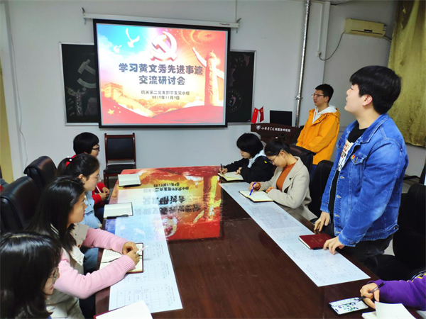 为认真贯彻落实习近平总书记对黄文秀同志先进事迹的重要指示精神,深入学习黄文秀同志先进事迹,11月4日,附属宝鸡医院机关第二党支部学生党小组组织召开“学习黄文秀先进事迹”交流研讨会,党小组全体学生党员参加交流研讨。 研讨现场 会议伊始,全体学生党员重温了黄文秀同志的光荣事迹,时代楷模黄文秀同志献身脱贫攻坚事业的感人事迹深深震撼着学生党员的心灵。接着,党员同志们围绕黄文秀同志的先进事迹进行讨论。 学生党...