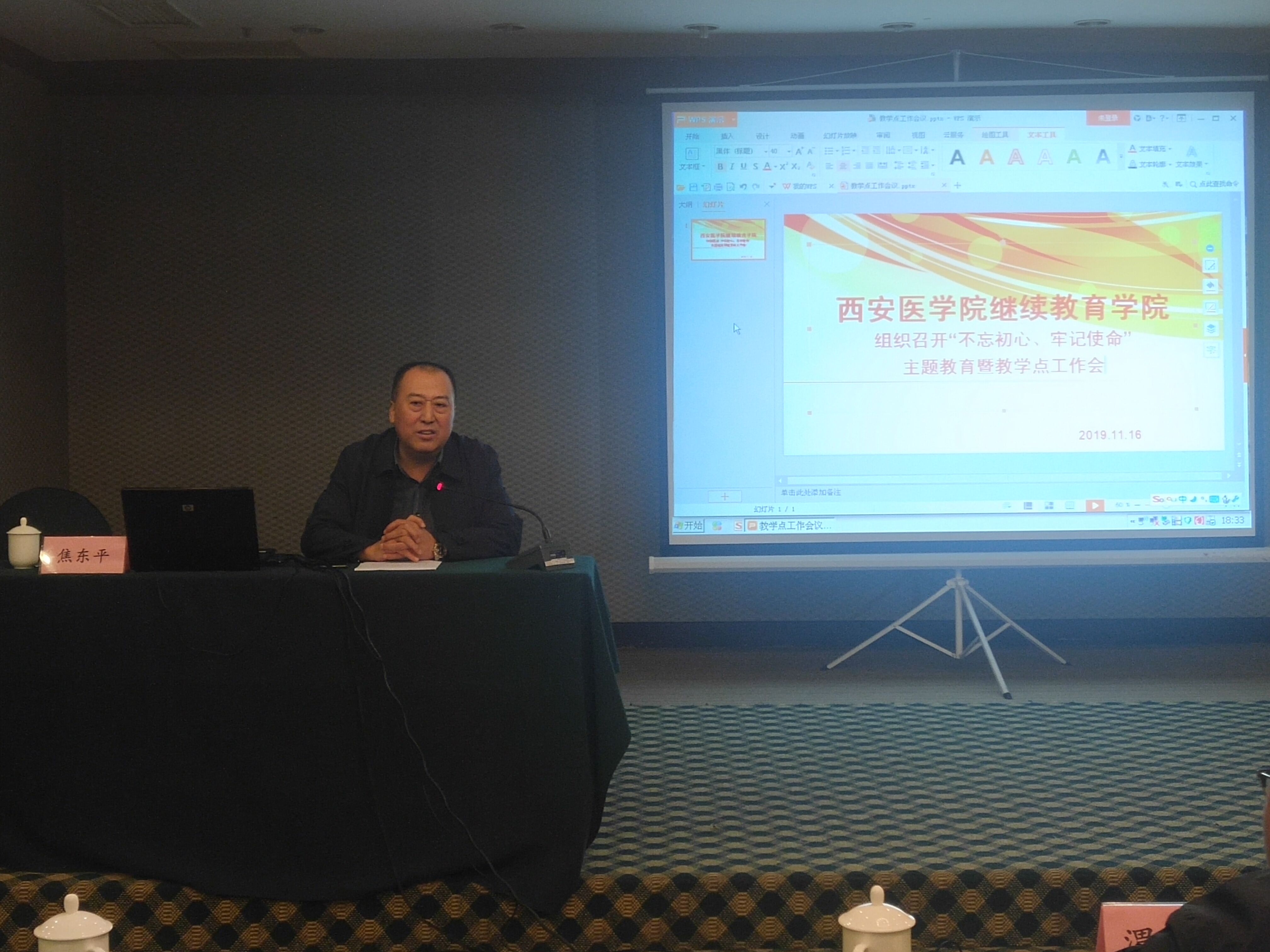 11月16日下午,继续教育学院在西安骊苑酒店多功能厅组织召开“不忘初心、牢记使命”主题教育暨教学点工作会,各校外教学点负责人、继续教育学院全体人员参加了会议,会议由继续教育学院院长焦东平主持。 继续教育学院院长焦东平讲话 会议第一阶段,全体参会人员聆听了西安交大继续教育学院党委书记张爱萍教授的“爱国奋斗—谈时代使命和生涯规划”的主题教育讲座。 “胸怀大局的担当精神、艰苦创业的拼搏精神、无私奉献的标杆...