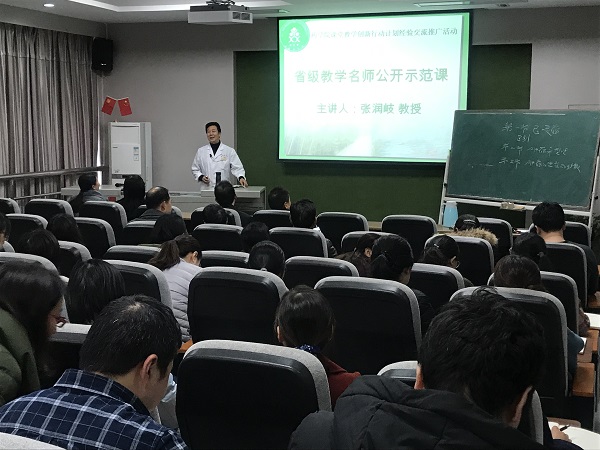 11月27日下午,药学院特邀陕西省教学名师、我校教学督导张润岐教授的《病理学》公开示范课在立德楼303报告厅开讲,拉开了我院课堂教学创新行动计划经验推广活动月的序幕。药学院全体教师参加了本次公开示范课活动。 精心的课前准备、巧妙的教学设计,体现了张教授严谨认真的态度;生动细致的讲授、图文并茂的板书与ppt制作,展示了张教授深厚的授课经验。短短的45分钟令在场听课者都明白了良恶性肿瘤的区别、生长与扩散,深刻体...