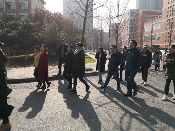 12月3日,基础体育部分工会组织开展了2019年“悦心情,享健康,健走新生活”职工健步走活动,在分工会刘庆副书记的号召下,大家结伴而行,从教工食堂门口出发,途经图书馆、教学楼、体育场,每个人享受着健康运动带来的身心愉悦。通过健步走活动,既强身健体,又融洽氛围,以更加饱满的精神风貌投入到工作中。 老师们健步走 健步走合影 大家纷纷表示,此次活动在锻炼身体的同时,增进了彼此间的友谊,增强了集体凝聚力和向心...