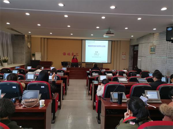 2019年12月11日下午,外国语学院开展课堂教学创新行动与经验推广交流主题活动,活动由外国语学院副院长薛英利主持,外国语学院全体专任教师和学校其它院部部分教师参加了本次交流活动。此次交流活动分三个模块展开,首先,陕西省教学名师、陕西理工大学外国语学院院长曾小珊教授作了题名为“课堂革命与教师专业发展”的报告。 会议现场 曾小珊教授与参会教师分享了三个重要内容:其一,课程视角下的教师隐性课程;其二,隐性课...