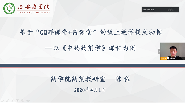 为进一步促进广大教师线上教学方式和经验的交流,帮助青年教师提高教学水平,药学院和基础医学部于2020年4月1日上午联合举办了第二场院部教学交流活动,药学院青年教师陈程进行了线上教学课程设计的展示并分享了前五周线上教学的体会,药学院和基础医学部领导和无课老师参加了此次交流活动。 首先,陈程老师简要介绍了《中药药剂学》的课程特点,通过学情分析、教研室集体备课讨论、开课前学生意见反馈等,确定了《中药药剂学》...