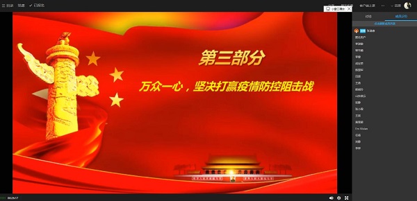 为贯彻落实习近平新时代中国特色社会主义思想和关于新型冠状病毒感染的肺炎疫情防控工作的重要指示精神,抓好疫情期间党员学习教育,激发党员责任感和使命感,机关三党总支图书馆党支部在疫情期间依托“腾讯课堂”、微信群等载体,开展了在线党课暨主题党日活动。3月30日上午10点,图书馆党支部全体党员准时线上集合进入腾讯课堂直播间,在支部书记张湛睿带领下学习了“弘扬伟大民族精神,凝聚力量共抗疫情”主题党课,并在党课...