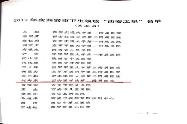 近日,中共西安市委、西安市人民政府表彰了2019年度西安市科技、文化、卫生领域的“西安之星”共73名同志,我校第二附属医院赵海康博士荣获2019年度西安市卫生领域“西安之星”荣誉称号。 获奖名单 奖项旨在充分激发全市卫生领域拔尖人才为西安创新发展、绿色发展、高质量发展服务的积极性,营造尊重劳动、尊重知识、尊重人才、尊重创造的良好氛围,推进健康西安建设,为西安加快建设国家中心城市和国际化大都市提供坚实的人才...
