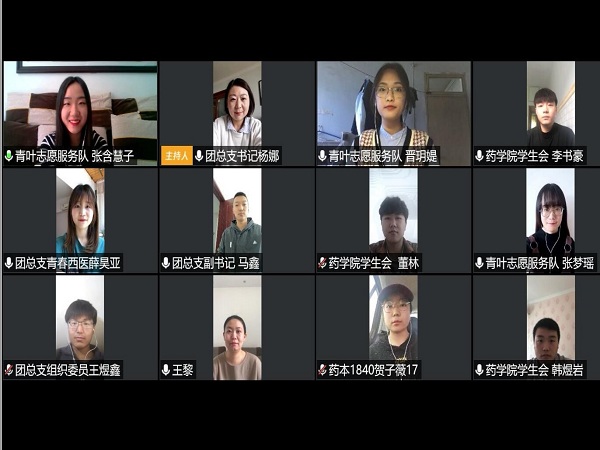 为了增加院部领导与团学干部之间的联系,了解学生居家学习、生活情况,药学院于2020年4月19日下午召开了团学干部视频会议,党总支副书记王黎出席,全体团总支及学生会干部参加,会议由团总支书记杨娜主持。 视频会议现场 会议中,团总支副书记马鑫同学汇报了自己最近的学习情况,他提到:虽然疫情困住了自己的脚步,但这样一个超长的假期,学习之余安排好闲暇时间进行了自我提升,使他收获满满。随后,团总支组织委员王煜鑫、...