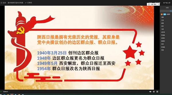 为贯彻落实习近平新时代中国特色社会主义思想,抓好疫情期间党员学习教育,激发党员责任感和使命感,机关三党总支图书馆党支部在疫情期间依托“腾讯课堂”、微信群等载体,开展了在线党课暨主题党日活动。4月24日下午,党支部组织委员赵懿婷带领支部党员学习了文件《省委书记胡和平在传达学习习近平总书记对陕西日报创刊80周年重要指示座谈会上的讲话》,支部全体党员在线学习了文件精神,共同感悟习近平总书记对陕西工作和陕西...
